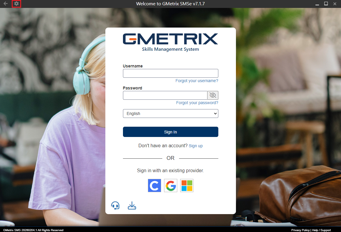 - Open the GMetrix software and click the gear icon in the upper left-hand corner.