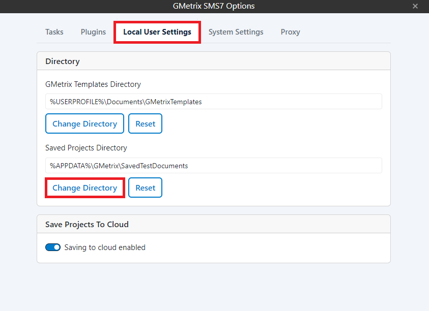 Note: If students change computers they will want to go into Local User Settings and ensure the settings are correct for the new computer they are on. We recommend students always check their Local User Settings before starting/resuming any GMetrix tests to ensure that their Saved Projects are directed to the correct folder.